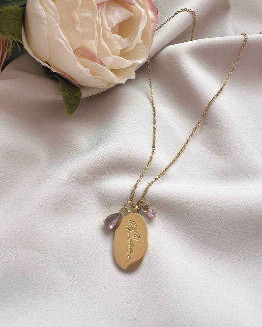 Joyas personalizadas con la flor y piedra de tu mes de nacimiento.