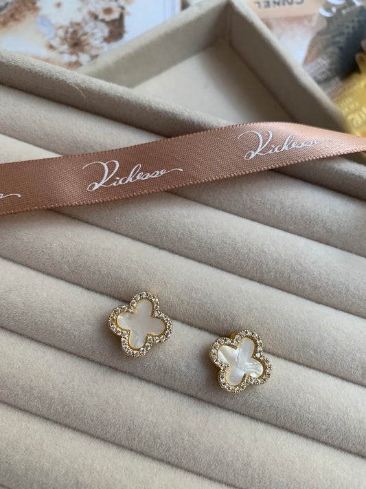 Aretes de trébol de cuatro hojas con nácar blanco
