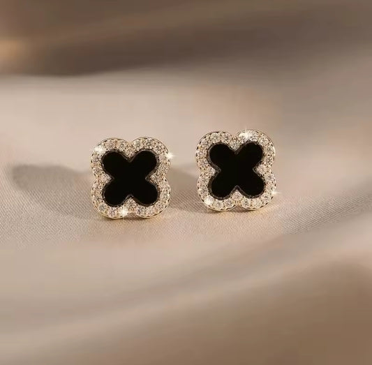 Aretes de trébol de cuatro hojas con nácar negro