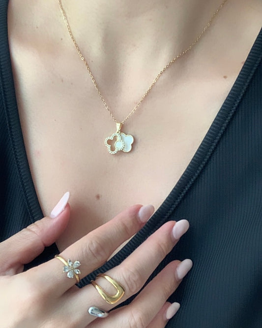 Collar Doble Capa con Trébol de Cuatro Hojas blanco 1pcsu